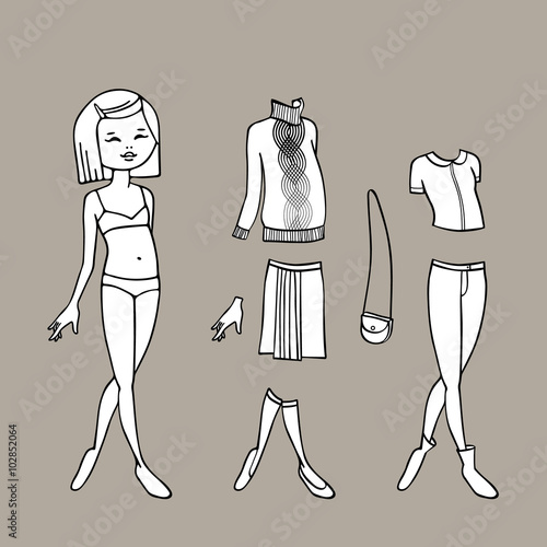 Black White Cute Dress Up Paper Doll Body Template Clothing And Accessories Vector Illustration Buy This Stock Vector And Explore Similar Vectors At Adobe Stock Adobe Stock