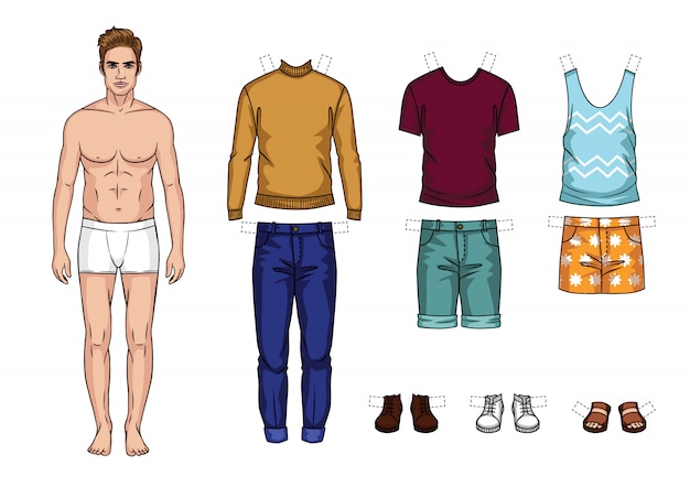 Paper Doll With A Set Of Fashionable Clothing Cute Trendy Boy
