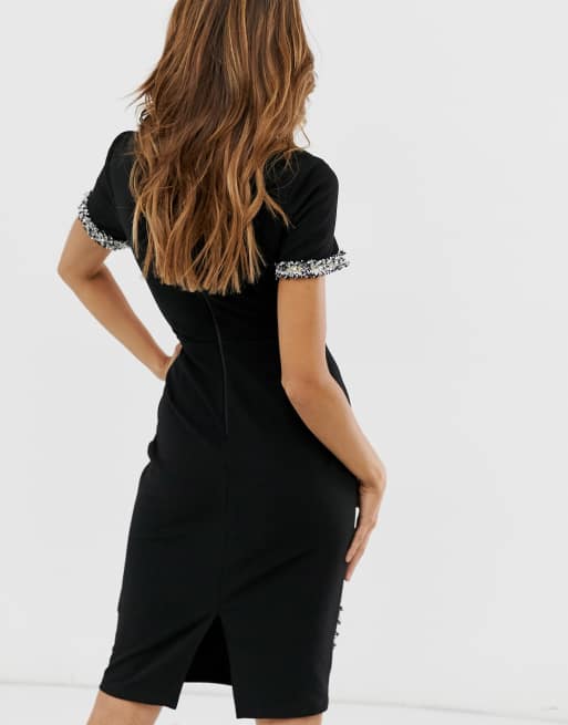 Home dress by colour silver dresses asos design silver metallic midi tea dress with metal buttons 4200 1200. Paper dolls high neck pencil dress with contrast lace insert in navy. Get a sale alert.