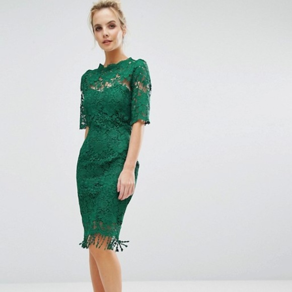 Paper Dolls Cap Sleeve Crochet Lace Pencil Emerald Dress We
