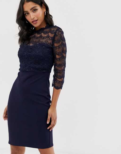Paper Dolls High Neck Pencil Dress In Crochet Lace Navy Shop