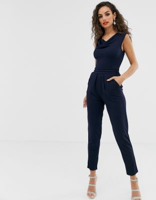 Outrageous Fortune Outrageous Fortune Cowl Front Jumpsuit In Navy Blue Shoppingscanner