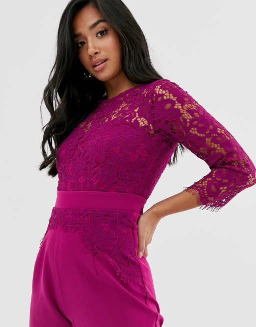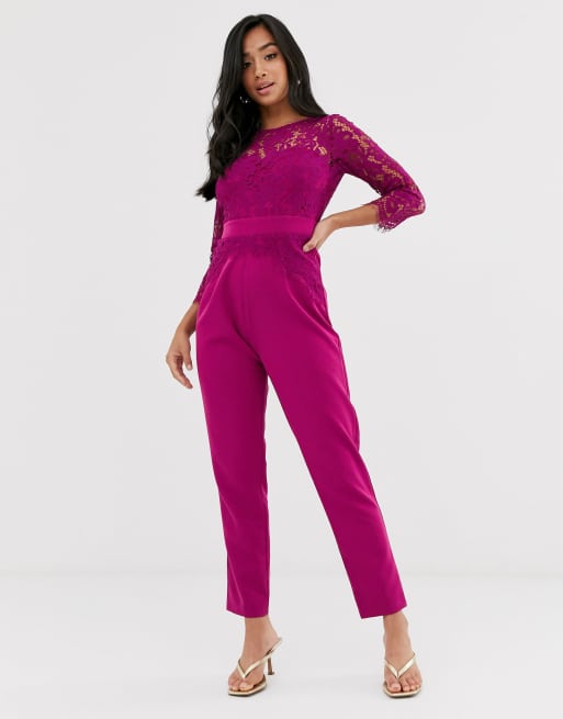 Paper Dolls Petite Paper Dolls Petite Cutwork Lace Tailored Jumpsuit In Raspberry Pink From Asos Usa Daily Mail