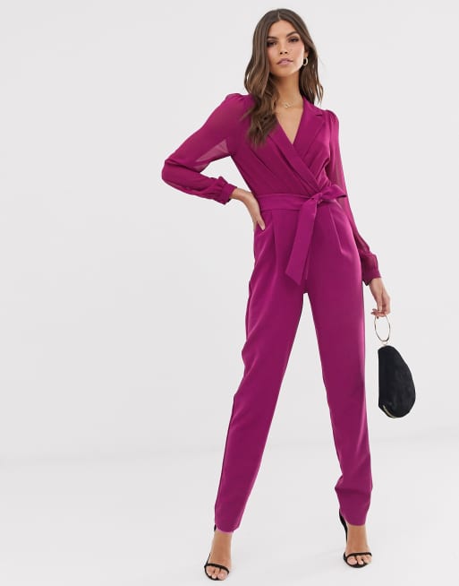 Shoptagr Paper Dolls Tailored Tux Jumpsuit With Tie Waist In Raspberry By Paper Dolls