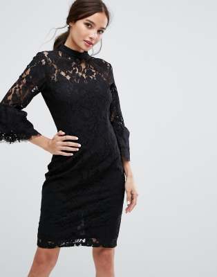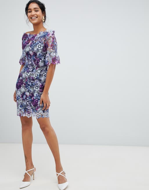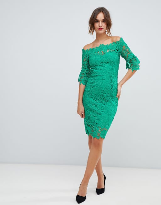 Paper Dolls Bardot Lace Pencil Dress With Frill Detail Women