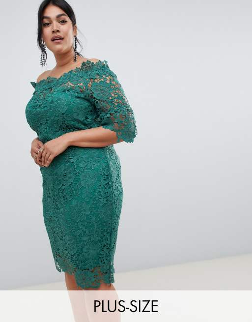 Paper Dolls Plus All Over Lace Bardot Dress In Navy Navy Lnubzvv