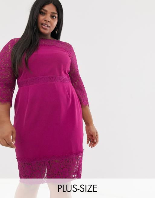 Paper Dolls Plus Lace Long Sleeve And Trim Pencil Dress In Raspberry Asos