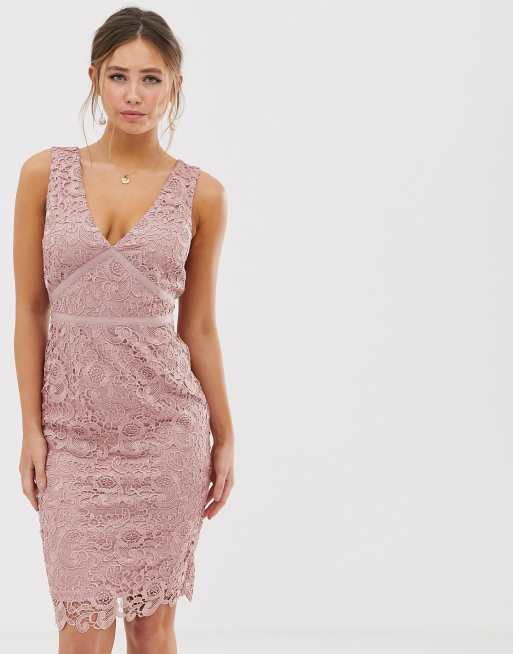 Paper Dolls V Neck Lace Pencil Dress In Dusky Pink Asos