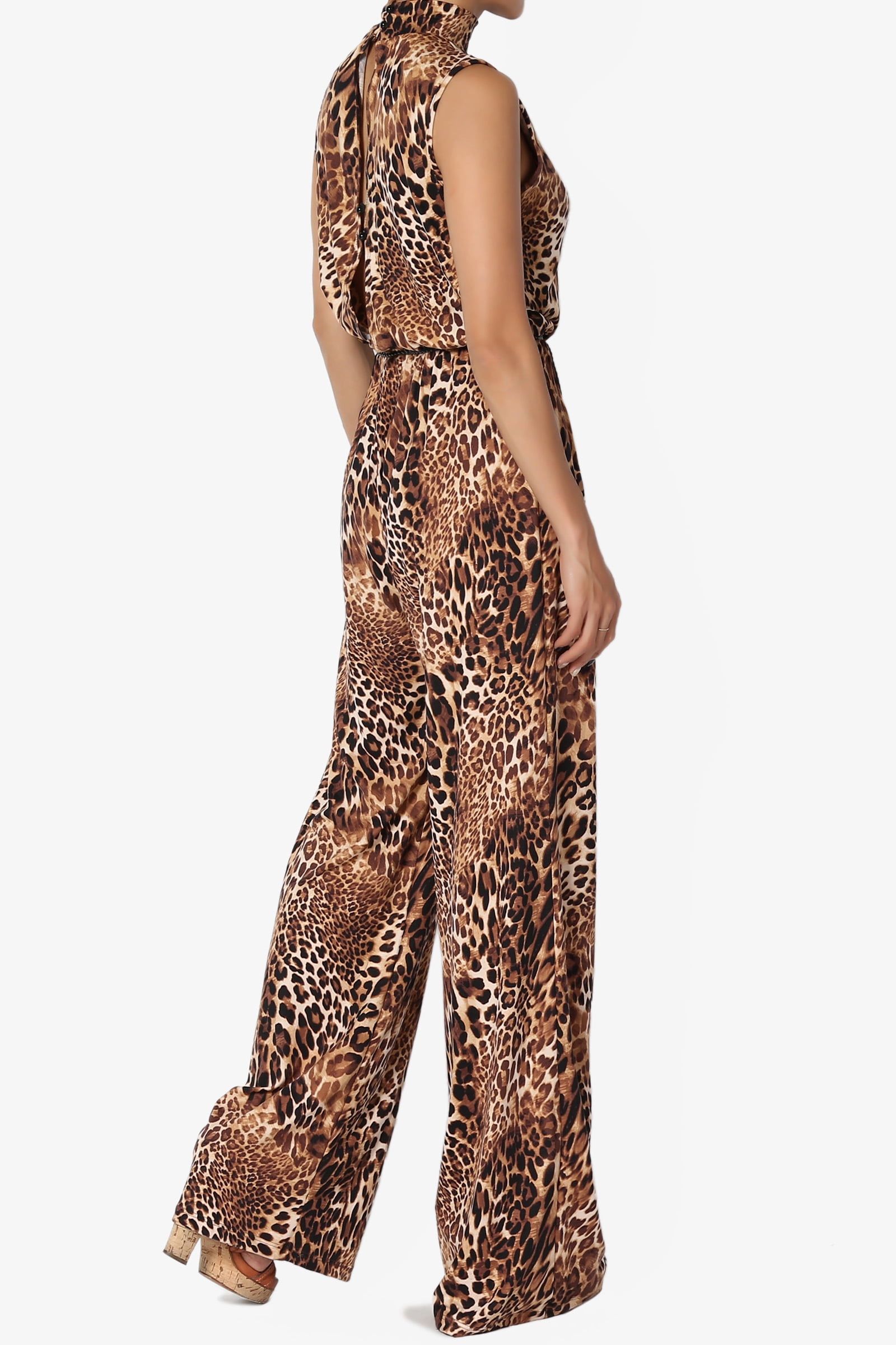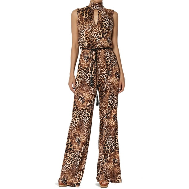 Themogan Women S Leopard Print Sleeveless Cutout Mock Neck