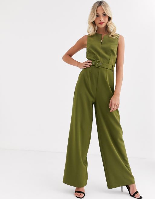 Paper Dolls Tie Waist Wide Leg Jumpsuit In Olive Shopstyle